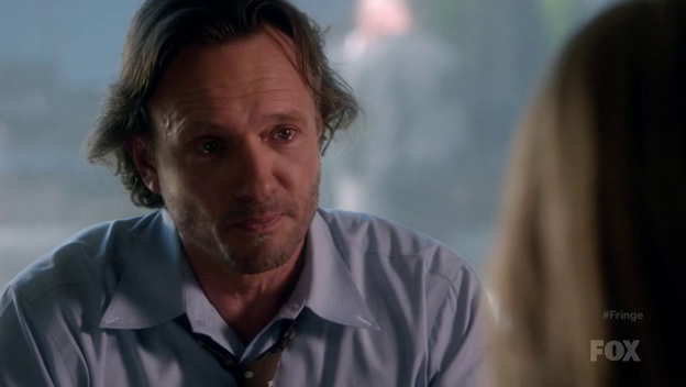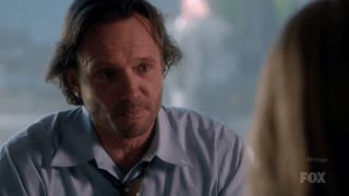 The most noticeable sign of rough edges is the dialogue being much more on the nose than is characteristic for Fringe. Statements about missing something in one’s life or lacking a tether or feeling a life long hole hammer the point of Peter’s absence much more clumsily than is expected from a show with its established pedigree.